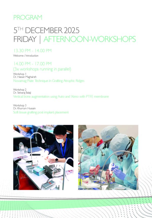 14:00-17:00 Workshop 1: Dr Hassan Maghaireh – Novamag Plate Technique in Grafting Atrophic Ridges