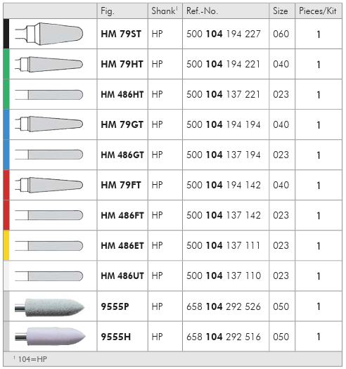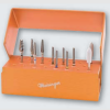 The TUNGSTEN CARBIDE PROFESSIONALS for working with titanium in dental laboratories and clinics. Developed in cooperation with the Clinic for Prostodonthics of the Technical university in Aachen, this set of carbide cutters that provide the means of processing different qualities of titanium.